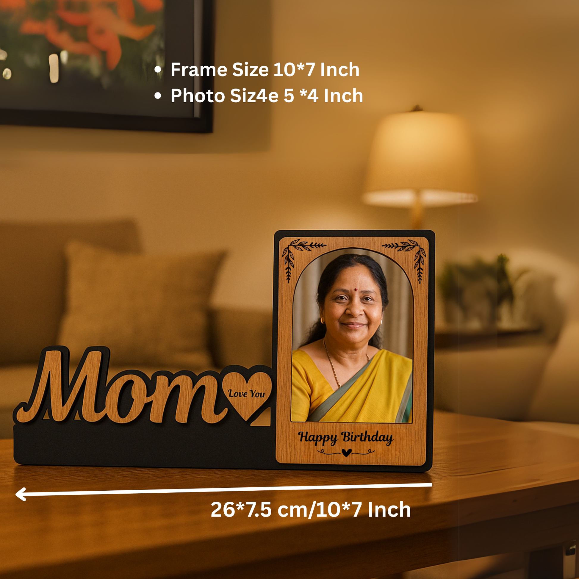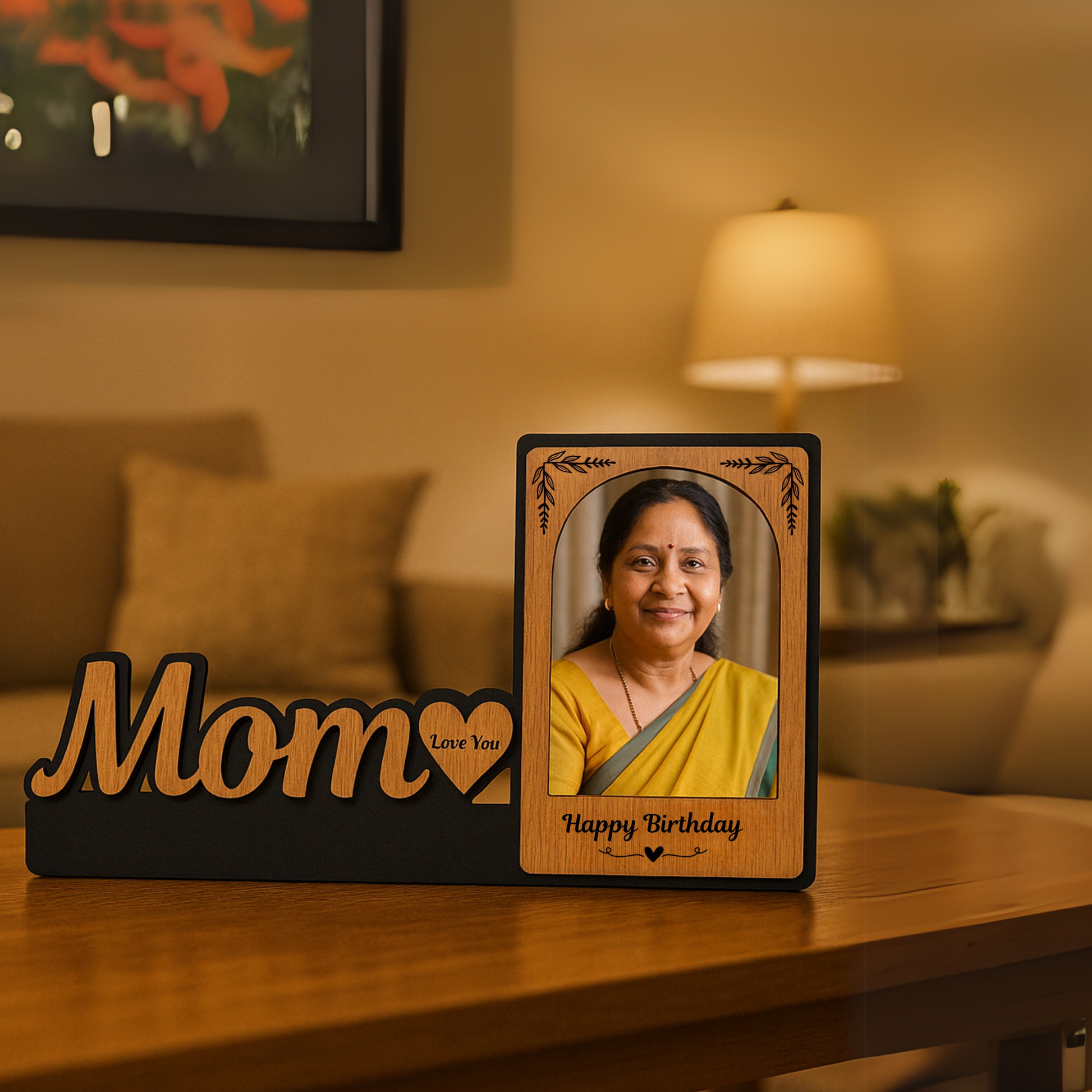 Customized "Mom" Wooden Photo Frame Birthday Gift | Dandjdecor.in