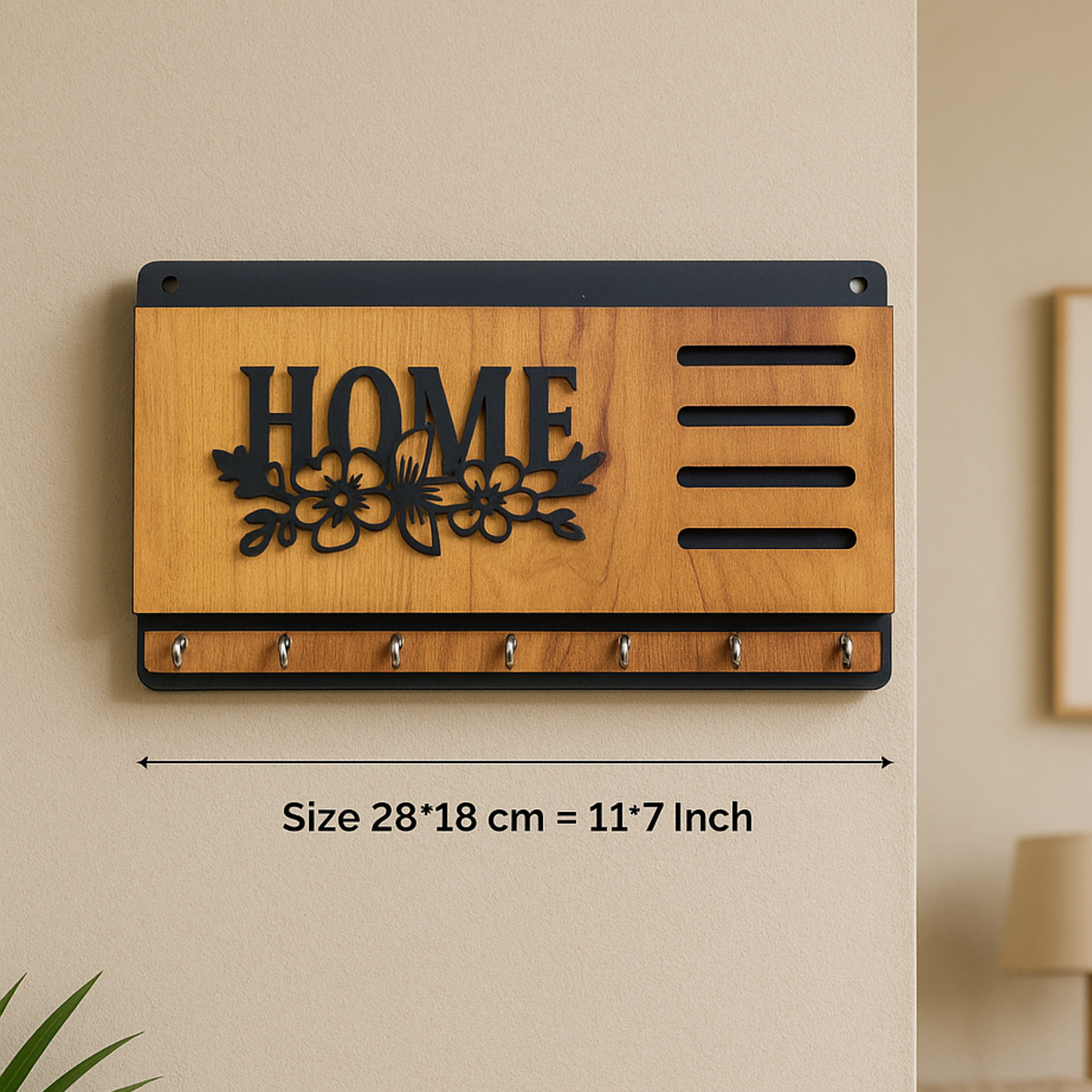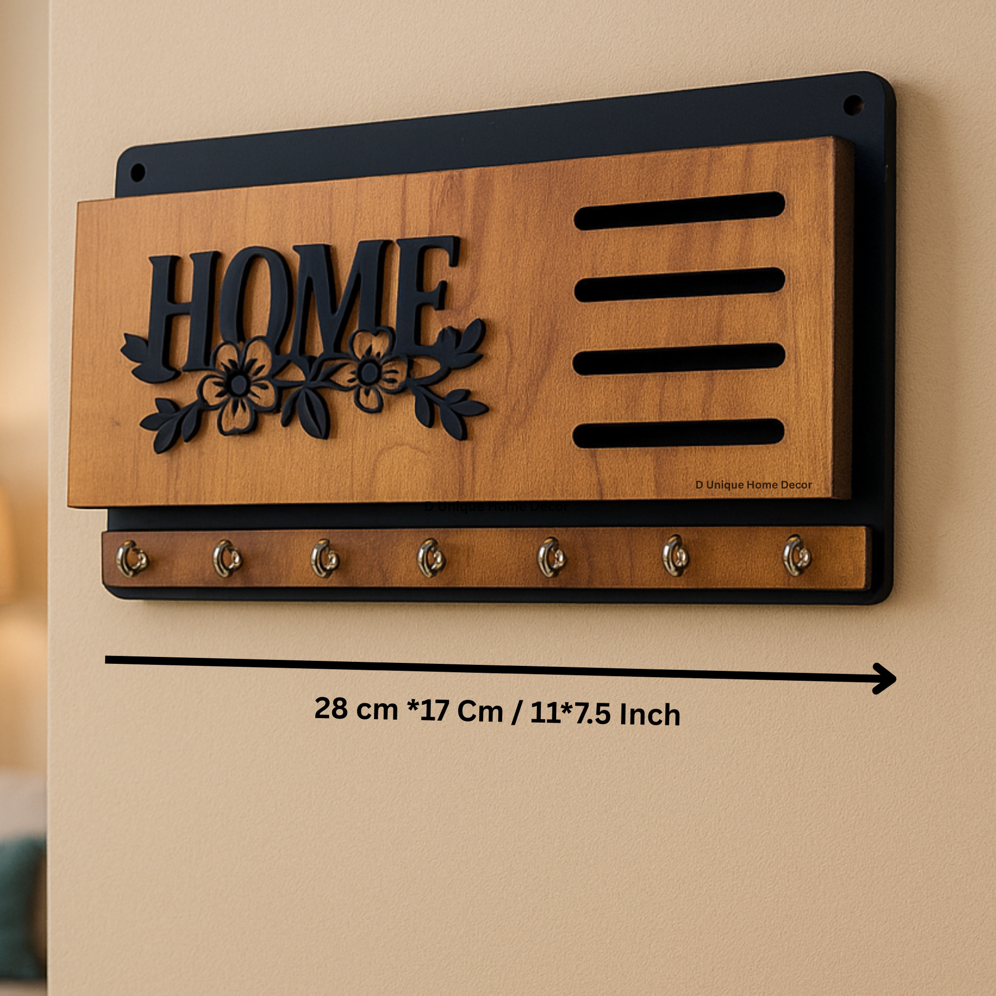 HOME” Laser Cut Wooden Key Holder – 7 Hook Wall Mount Organizer | Dandjdecor.in