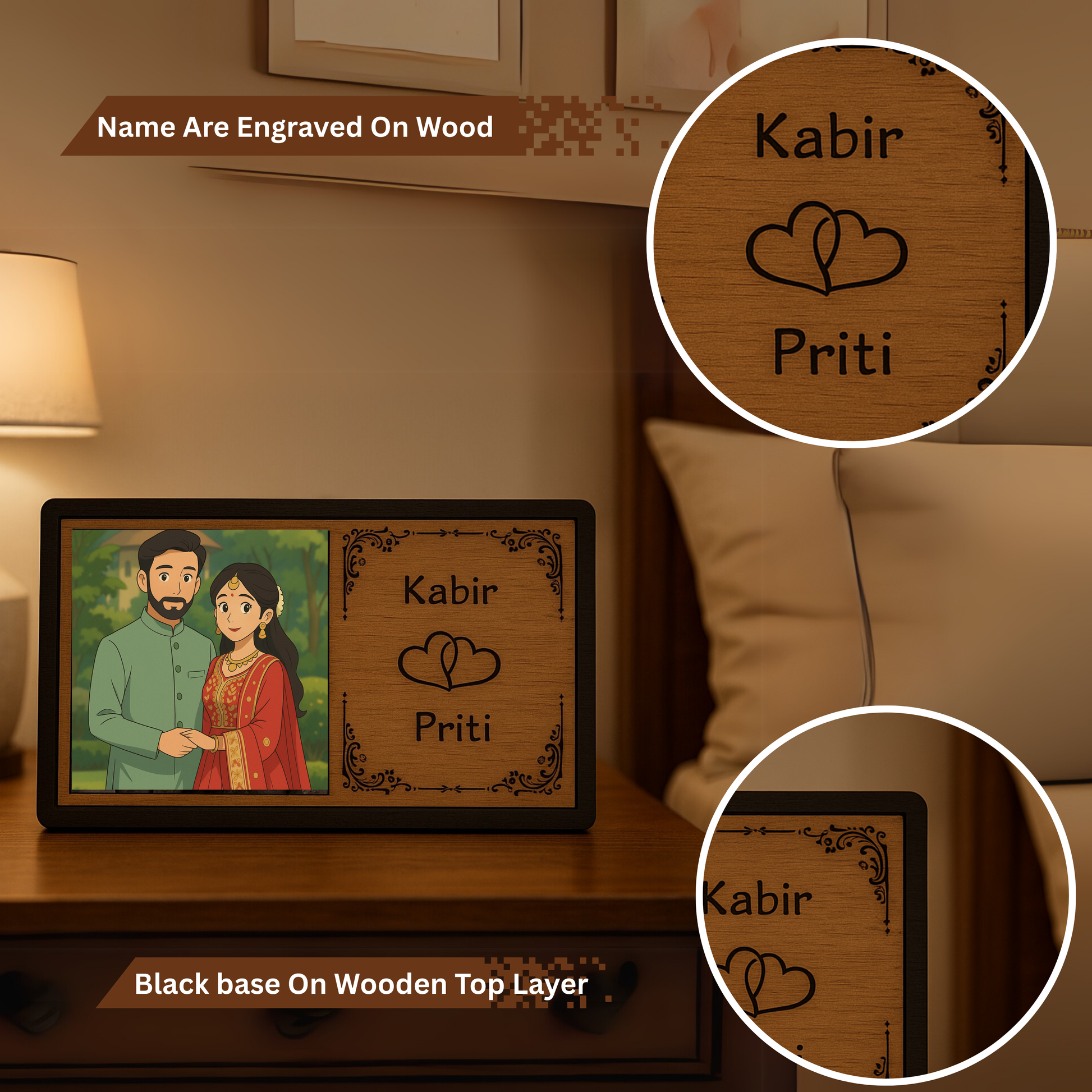 - ✅ Custom Couple Names – Wooden cutout design in elegant font